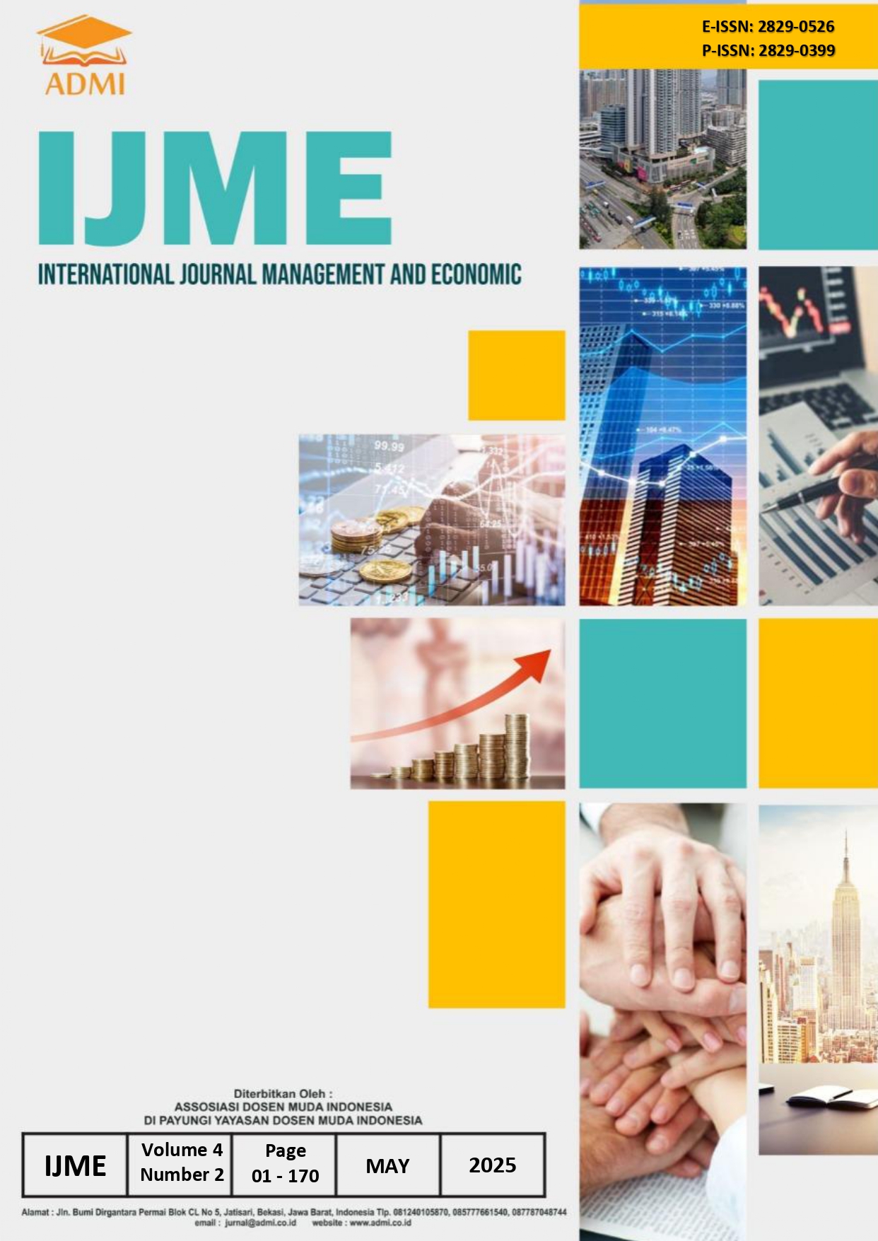 International Journal Management and Economic (IJME), P-ISSN:2829-0399, E-ISSN: 2829-0526 is published three times a year, in Januari, Mei and September by Asosiasi Dosen Muda Indonesia. IJME aims to: Promote the latest research results on Management and/or Entrepreneurship and also Economic. Only publish the results of Subjects suitable for publication include but are not limited to the fields of Marketing Management, Finance Management, Strategic Management, Operation Management, Human Resource Management, E-business, Knowledge Management, Management Accounting, Management Control System, Management Information System, International Business, Economics, Business Economics, Business Ethics and Sustainable, and Entrepreneurship, etc. IJME welcomes papers with the above objectives and scope. The editor decides the paper to be published in IJME after being reviewed by an appointed reviewer (double blind review). Authors will be notified of reviewers' comments and suggestions.